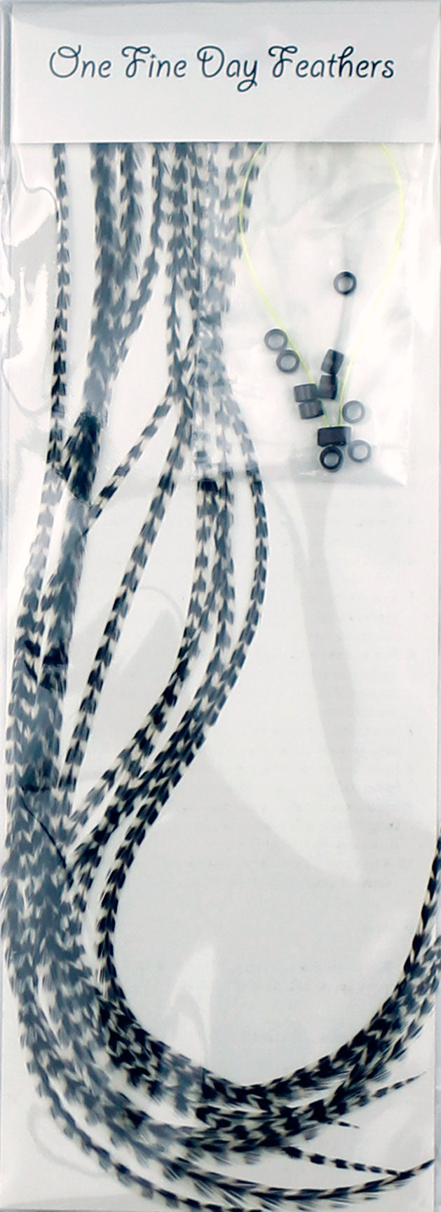Długości tych piórek wahają się od 22-33 CM. Pakiety One Fine Day są gotowe do nałożenia, z mikro pierścieniami, instrukcją i pętlą do aplikacji. Będziesz potrzebowała własnych szczypiec domowych, aby zacisnąć pierścienie.